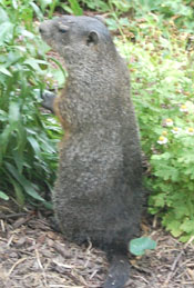 Destruction! Carnage! Leafy mayhem! This little critter broke through the chicken wire perimeter of the veggie garden and stripped all the leaves off the lettuce, cucumbers, squash, beans, and pumpkins. In one night! Never has such a drastic example of a rodent gourmand existed in my yard! I am just grateful he doesn’t like tomatoes or peppers or this animal lover would be gunning for groundhog. (Well, not in real life, but definitely in my imagination.)