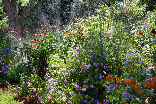 July is the time for tall flowers. Showy flowers. Sure, we thought May and June were pretty great, but on the whole those gentle months bring small to medium-sized, perfectly under control mounds of flowers. Now that it’s July, you’ve probably lost control of your garden completely to ostentatious giants like tall bee balm, balloon flowers, Shasta daisies, coneflowers, Culver’s Root, Joe Pye-Weed, tall phlox, lilies, and butterfly bushes. Things are growing on top of and in between each other, plants are climbing other plants, and the colors have gone kaleidoscope bright. Add a spray of water from your sprinkler and just let yourself be dazzled. There are so many choices of plants that are 36, 48, or even 60 inches tall! If you don’t have anything more than a foot tall in your garden, it’s time to build upward!