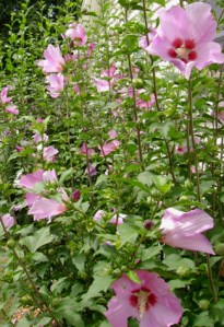 Okay, I’m cheating again. This isn’t actually a flower either. It’s another shrub! Rose of Sharon is a classic shrub. It can look like a small tree. I keep mine trimmed to be full bushes around 5 feet high. This particular variety is called Aphrodite and you can see why…huge two-toned pink flowers are showstoppers. They look quite exotic for a hardy perennial shrub in Illinois. Indeed, Rose of Sharons are part of the dramatic hibiscus family – except they can handle our winters. Just give them full sun and a lot of space and July through frost, you will enjoy an amazing show.