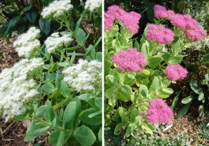 Sedum is a perennial that is often overlooked or taken for granted. When the other flowers are blooming like crazy in the spring and summer, the sedum just waits. It has attractive succulent leaves that add interest to the garden, but nothing that makes you say wow. Until now. This time of year, they are definitely a “wow” and prove why they are necessary additions to any garden. There are many varieties to choose from (including groundcovers), but two of my favorites are shown in the photo. The bright purple sedum is called (appropriately) “Neon” and the white one, which is a newer variety, is called “Stardust.” I prefer these two plants because they are short, about a foot high, so they don’t flop like other taller sedums. And the bright, fresh colors are a real knock-out. These are hardy plants to zone 3 so they survive just about anything. But it is recommended that you do not deadhead them until spring. Since they offer such nice winter interest, I wouldn’t want to anyway.