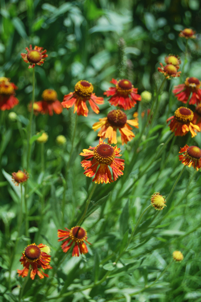 Helenium, also called “Helen’s Flower,” was named after the famed Helen of Troy. I’m not sure an orange and red prairie flower qualifies for that refined a moniker. This is kind of a silly looking plant that gets about 3 feet high and is just a touch floppy. This particular variety, “Moerheim Beauty,” is more freestanding that other heleniums, which need staking. Indeed, it is standing up on its own thus far, but I also have it propped against other tall and robust flowers. I’ve only had this plant for two summers and I am quite impressed with its performance so far. It seems impervious to our weird weather conditions and the color is outstanding. The flowers are small, but intense orange and red. They have been blooming for about a week now, which is odd, because they shouldn’ t be blooming until late July. Apparently, our weather at present is mimicking August. Oh well, I’m enjoying them now.