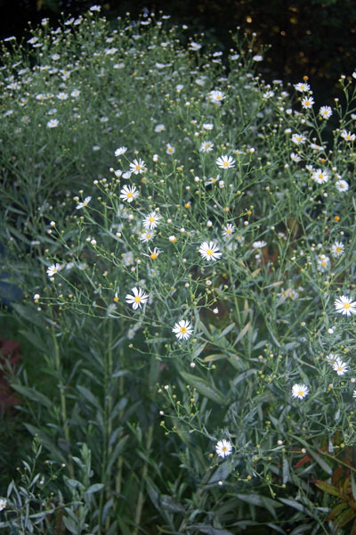 Last year, about this time, I posted a photo of a scraggly little slip of a plant I had just purchased called “Boltonia asteroides,” an American wildflower also called Wild Aster. The label said it would get to 4 feet tall and 3 feet wide and boy, they were not kidding. That plant shot up this year to impressive size. I was even able to give a clump to a friend in early spring. I can’t say enough good things about this plant. For much of the season, when it isn’t flowering, it looks like pale green tall grass. Then when it finally does bloom in September, well, you can see the photo. Amazing, isn’t it? I’ve read that, as with common asters, one can pinch these stems back in early July to keep the plant shorter later on. But I personally get a kick out of a flower that sees eye to eye with me. Definitely do not pass up the chance to own that scraggly looking, tiny pot of a wildflower in your garden center when you see it. I am so pleased with the performance of my native plants this year!